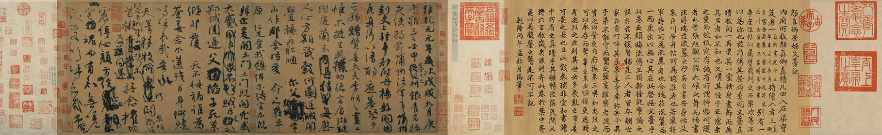 《祭侄文稿》现收藏于台北故宫博物院。《祭侄文稿》是颜真卿为侄子颜季明写的悼文,全文23行269字,其中脱漏1处,涂改14处,改后定稿234字。颜真卿将娴熟的笔法、结体、章法与自身炽烈奔放的情感融为一体,字里行间充满了爱与愤、伤与惜、悲与痛的情感纠结。《祭侄文稿》是个人情感和书法技巧完美结合的巅峰之作,也是创新求变的典范之作,是《兰亭序》后的又一座艺术丰碑,被誉为“天下第二行书”。